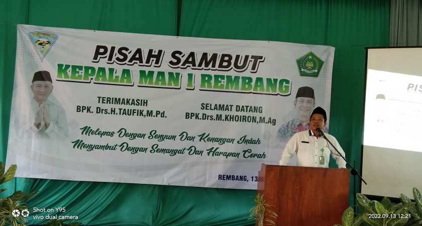 Sementara itu, kepala MAN 1 Rembang yang baru, M.Khoiron dalam sambutannya mengatakan ucapan terimakasih kepada kepala kantor beserta jajarannya serta civitas MAN 1 Rembang yang telah menerima kedatangannya.